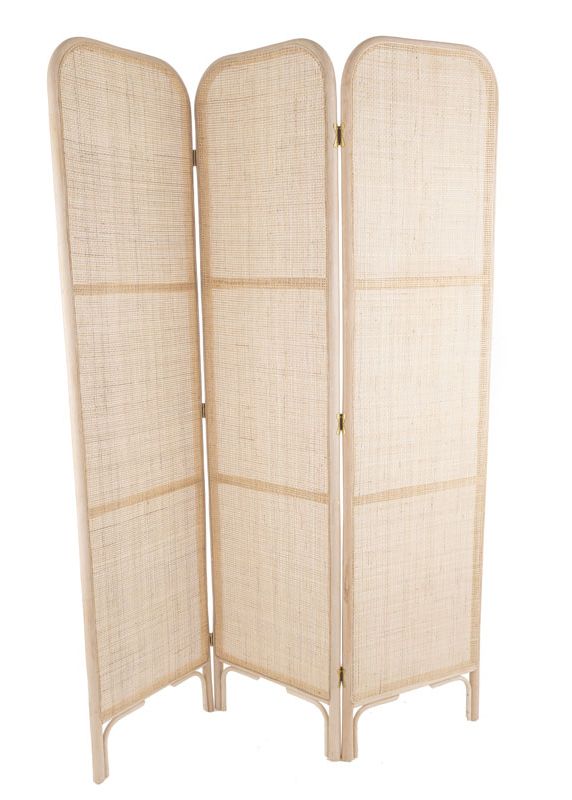 De kamerscherm heeft per panel een breedte van 45 cm een een hoogte van 180 cm.  De roomdivider is van naturel rotan.