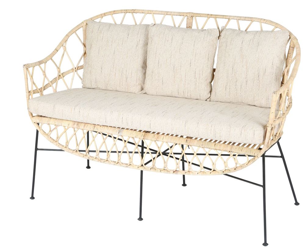 Nieuw bank van rotan met metaal zwart onderstel. De voetjes van de poten zijn van rubber. De bank is een neiuw ontwerp omdat de naturel rotan helemaal terug is.