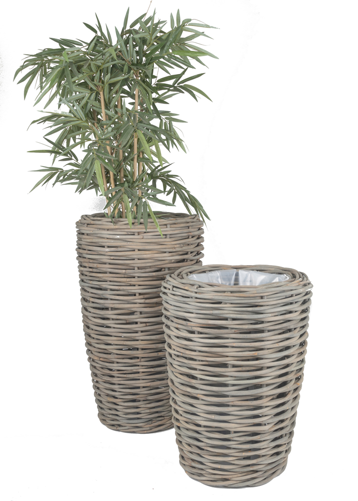 De Rotan plantenzuil L is een stevige en robuuste plantenbak die direct sfeer toevoegt aan je terras, veranda of tuin.