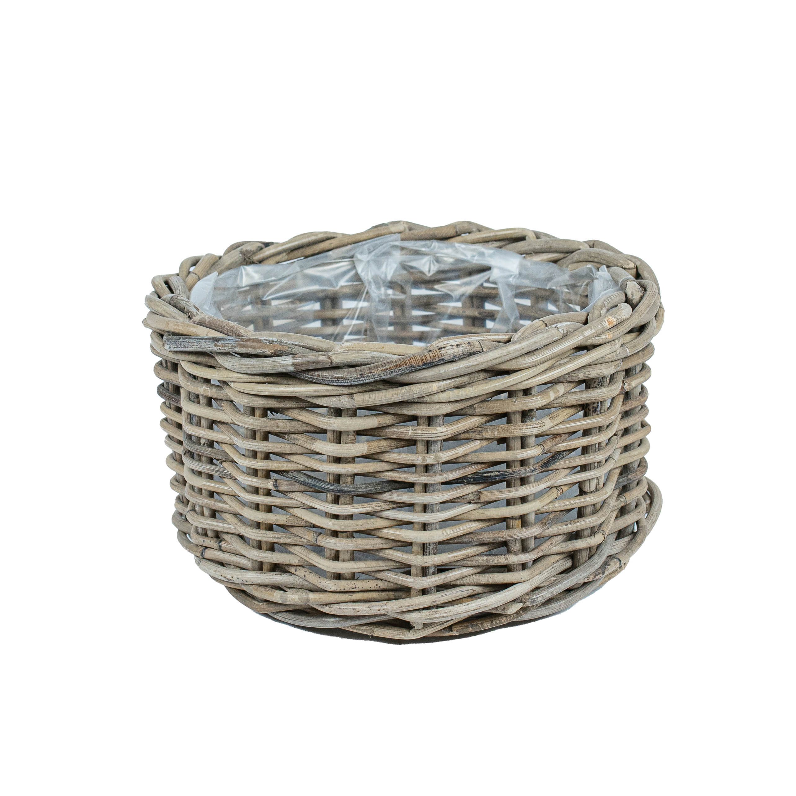 Deze stijlvolle plantenmand, gemaakt van grijze rotan en voorzien van een plastic voering, is perfect voor het binnen en buiten presenteren van je planten. De mand voegt een natuurlijke, rustieke sfeer toe aan elke ruimte. De mand is verkrijgbaar in drie verschillende maten, zodat er altijd een geschikte optie is voor elke plant of ruimte.