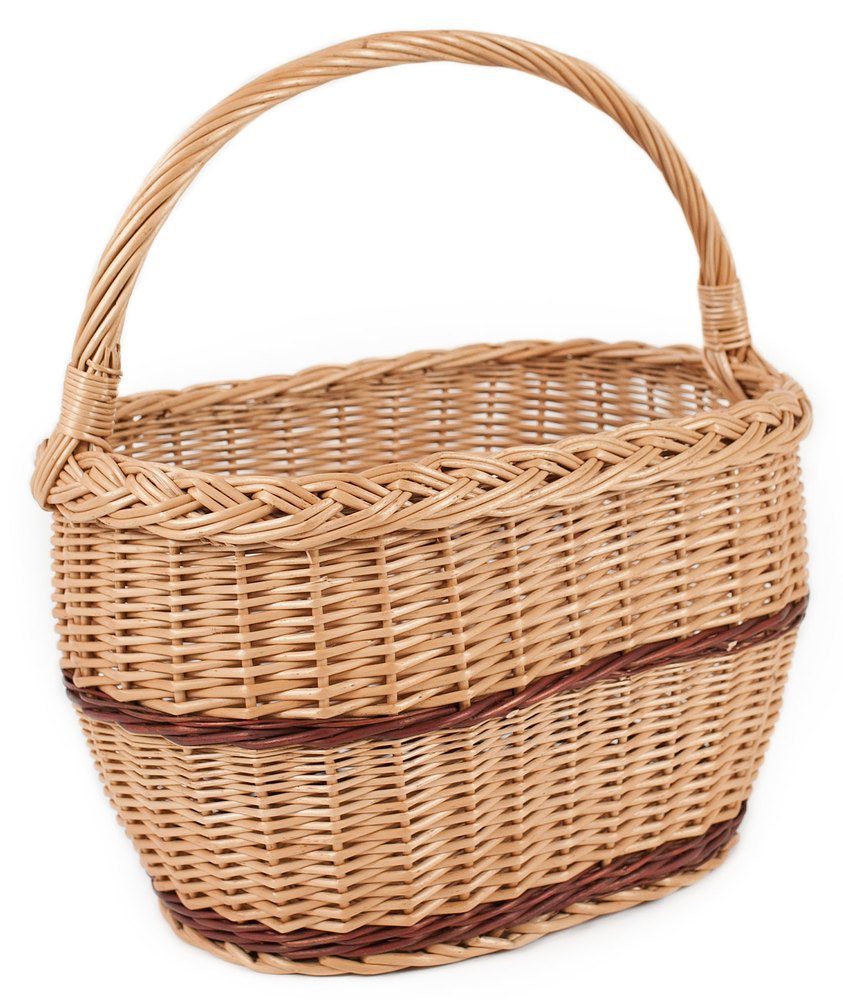 Deze rieten boodschappenmand heeft een overdwars hengsel.