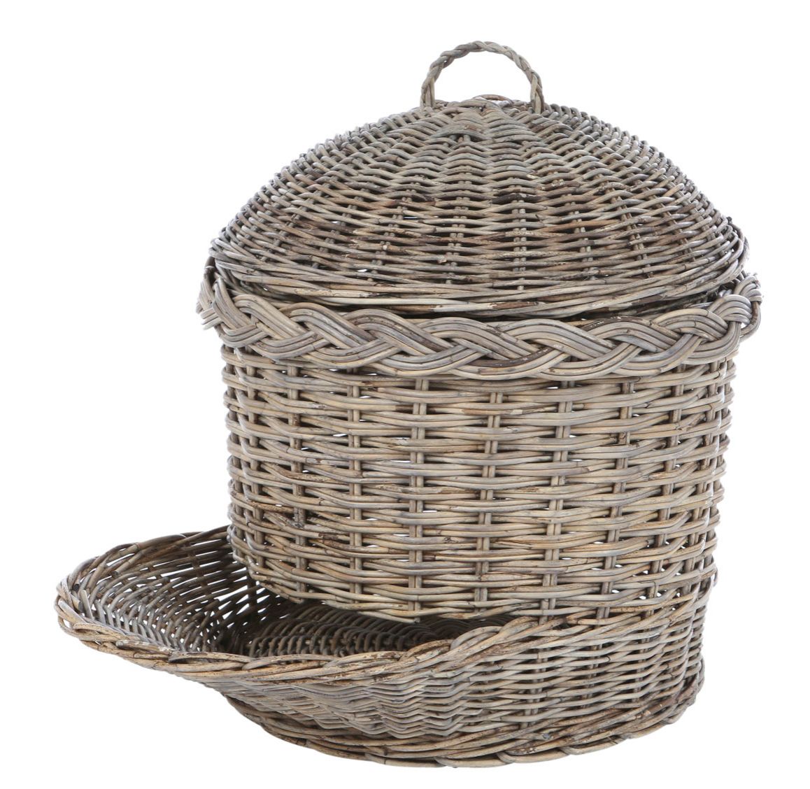 Leuke grijze rotan mand om aardappelen of uien in op te slaan. Een mooi item voor het opslaan van een allerdaags product.