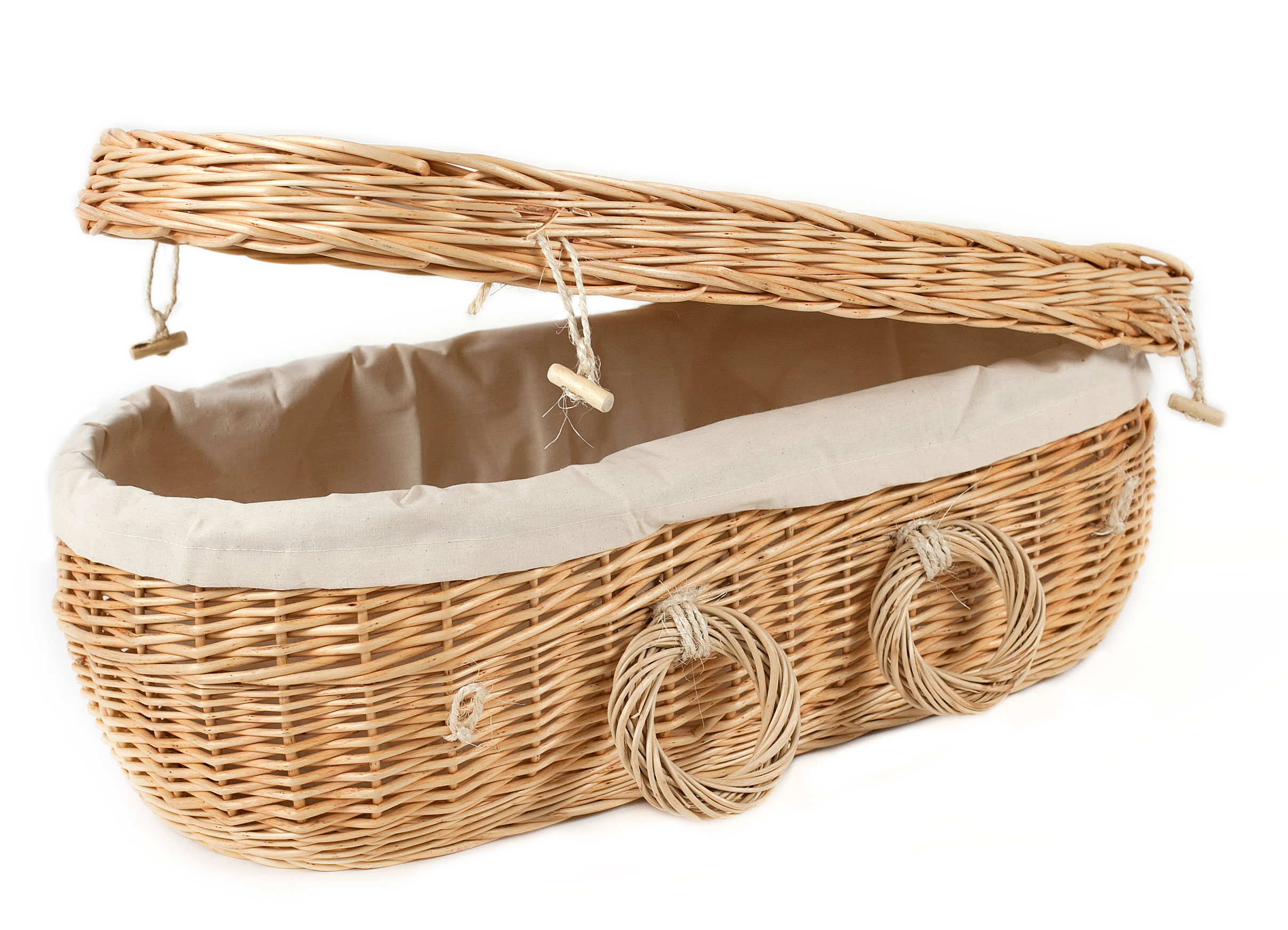 Rieten kindergrafmand is een vriendelijk mandje. De manden zijn voorzien van een binnenvoering van ongebleekt katoen.