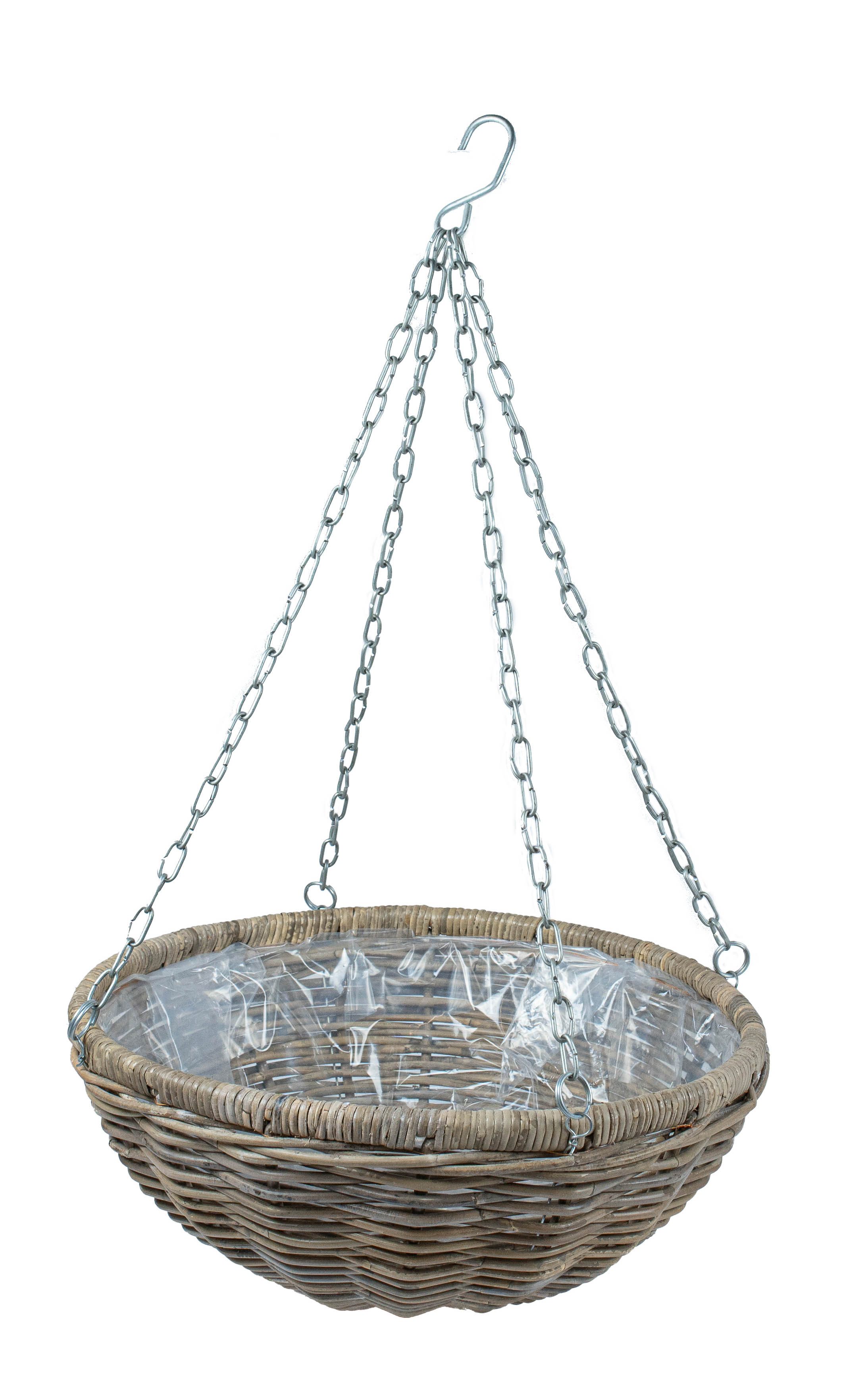 De mand heeft een ketting om op te hangen.